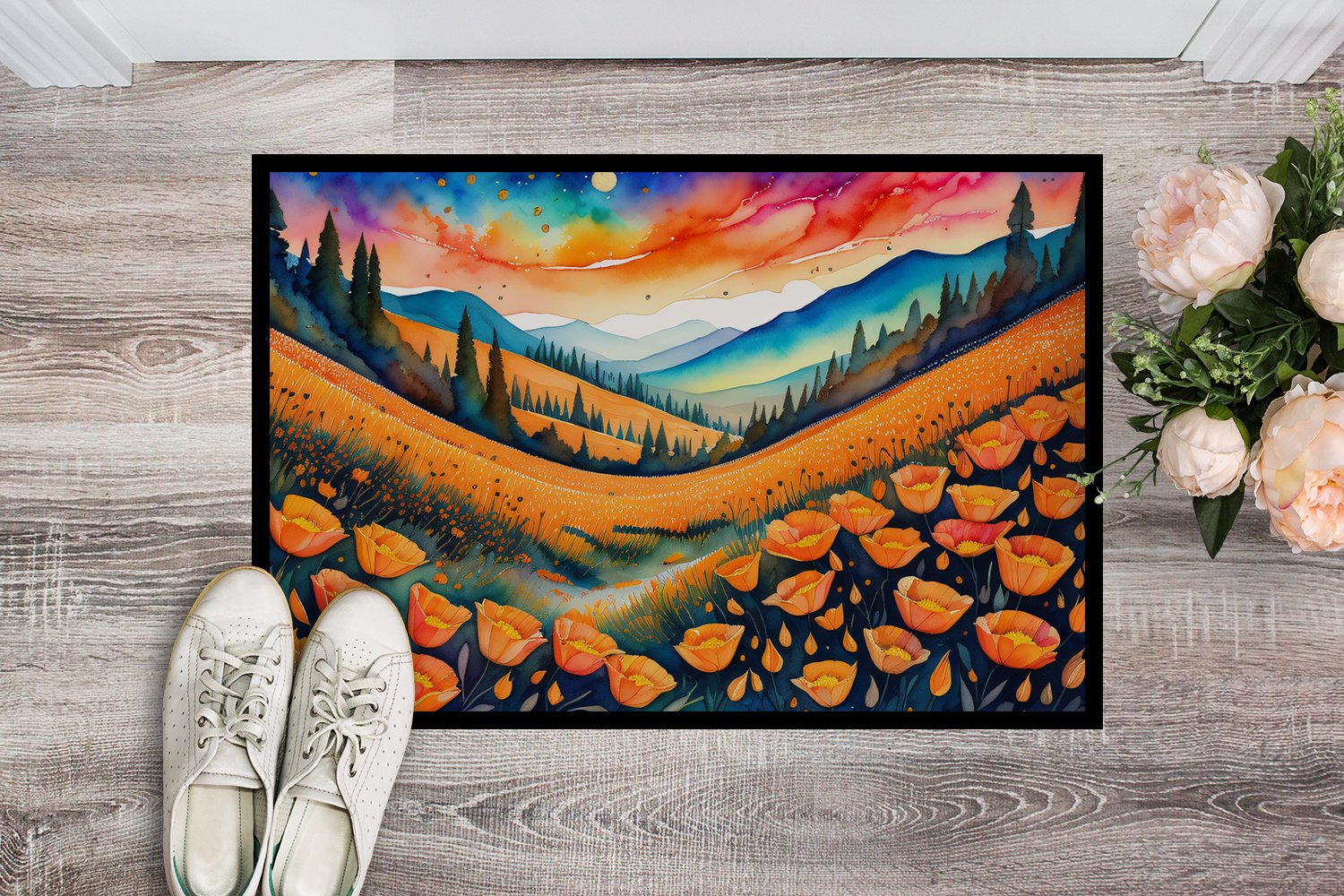 NEW California Poppies in Color Doormat Front Door Mat Indoor Outdoor Rugs for Entryway, Non Slip Washable Low Pile, 18H X 27W